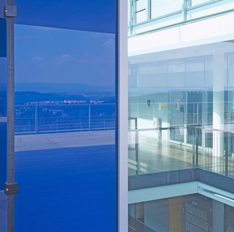 Struktur und Rhythmus, Material und Farbe, Licht und Transparenz, Interferenz von Außenraum und Innenraum, Zeichen und Symbolik
